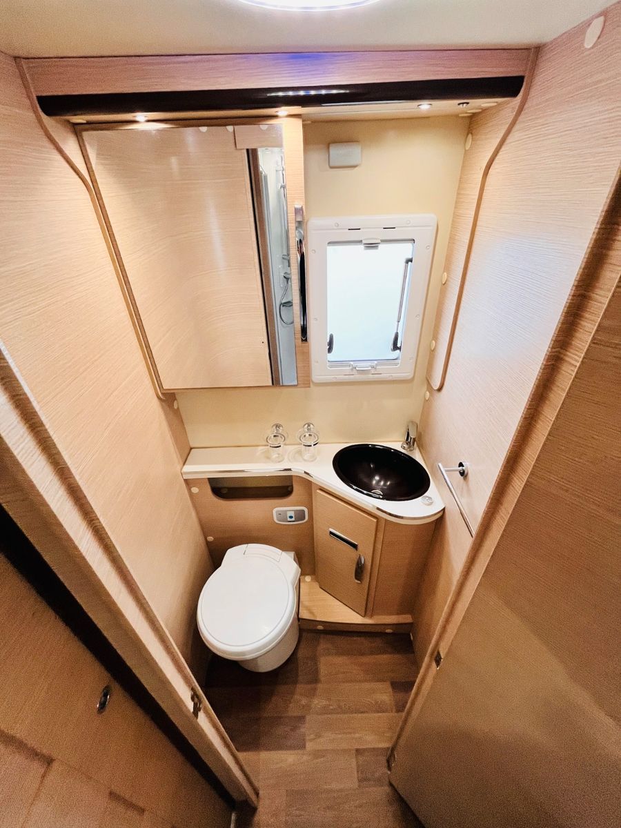 – Raumbad mit sep. Dusche, Waschbecken und Thetford Cassettentoilette
