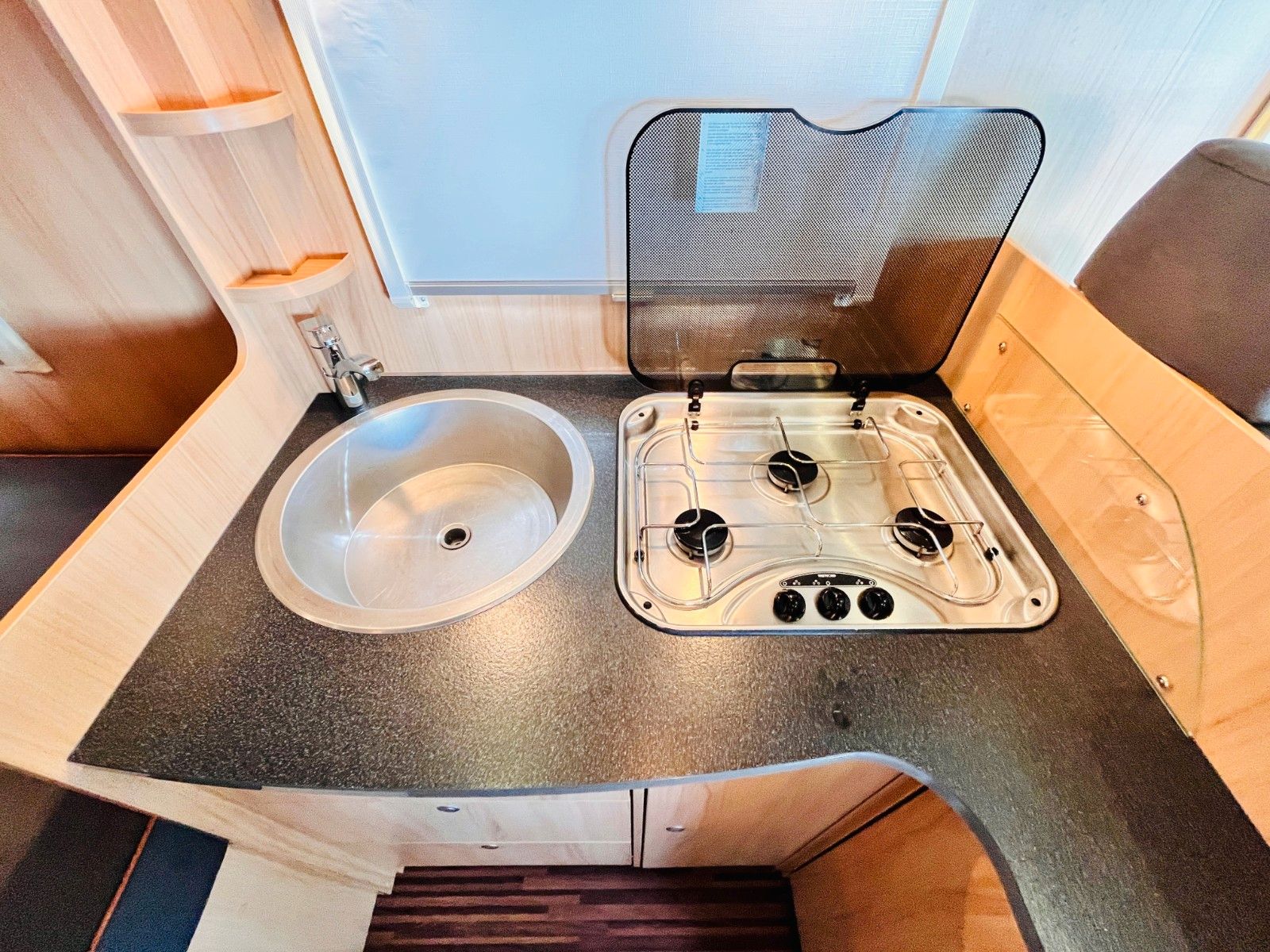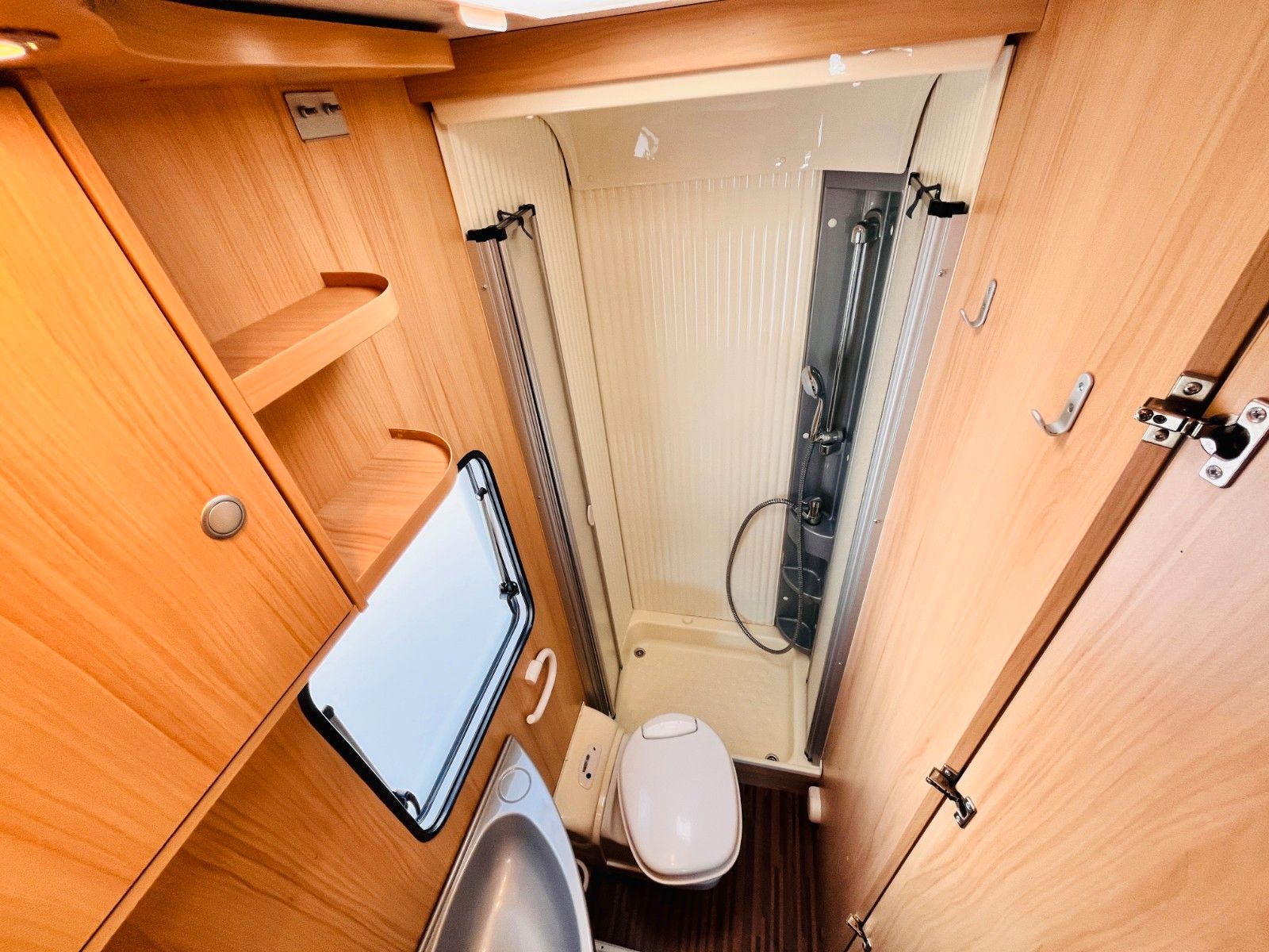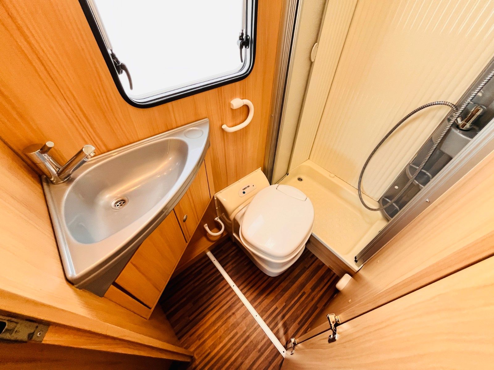 – Bad mit Dusche, Fenster, Waschbecken und Thetford- Cassettentoilette