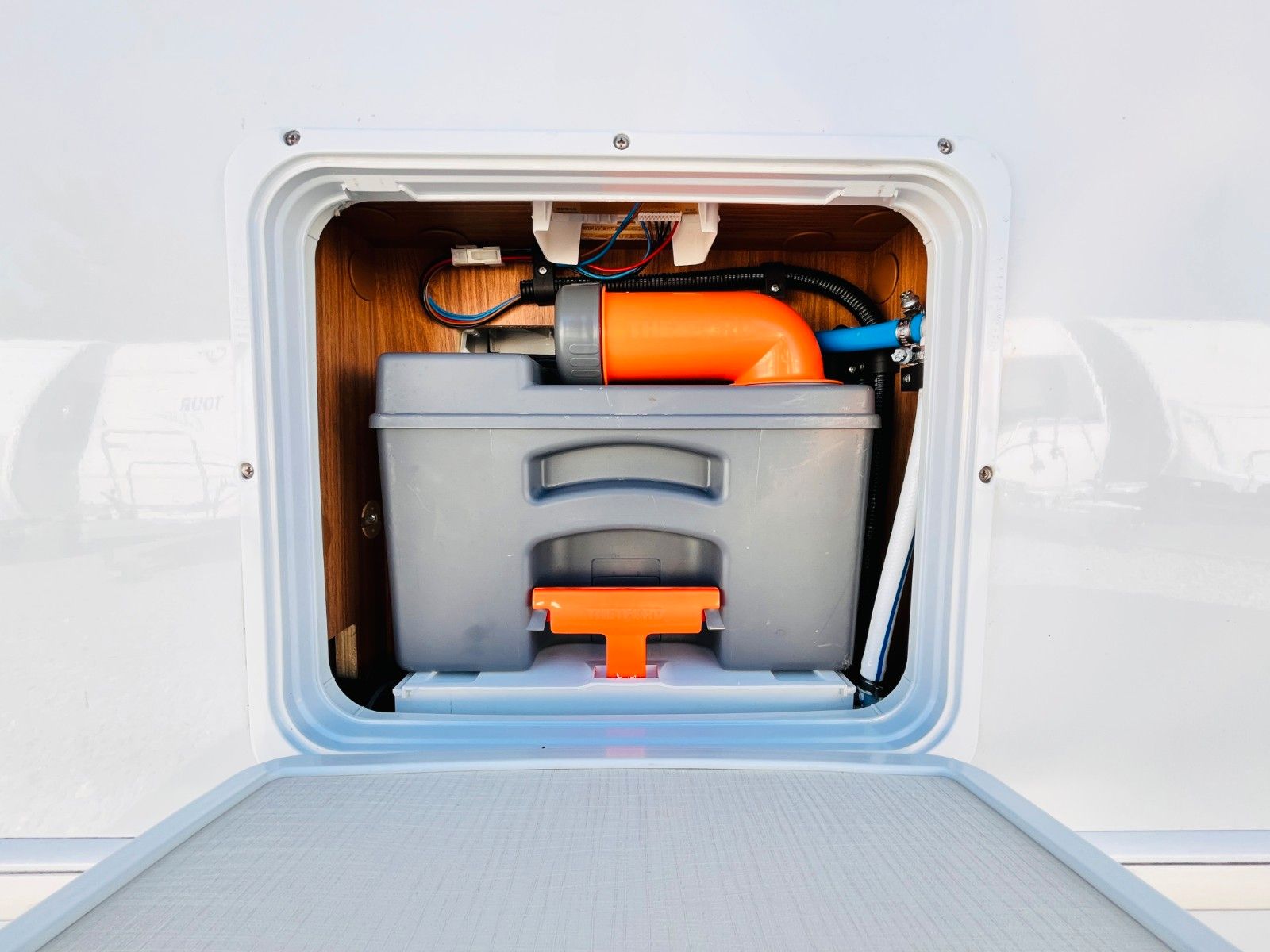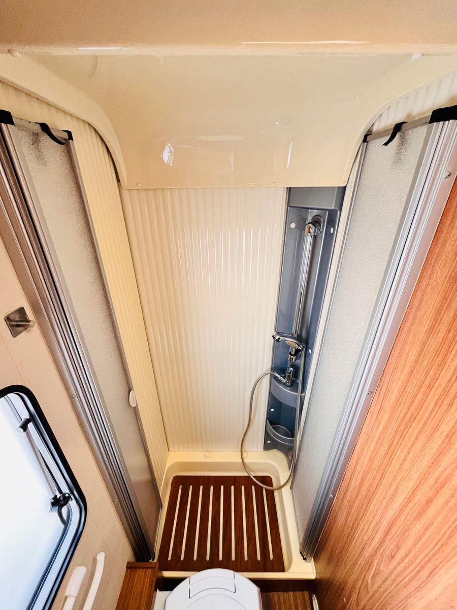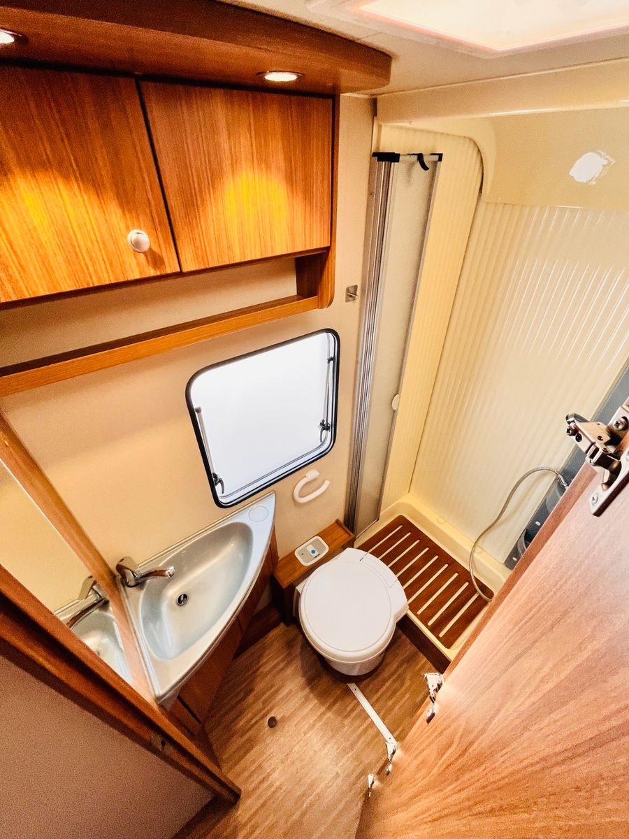 – Bad mit Dusche, Fenster, Waschbecken und Thetford- Cassettentoilette