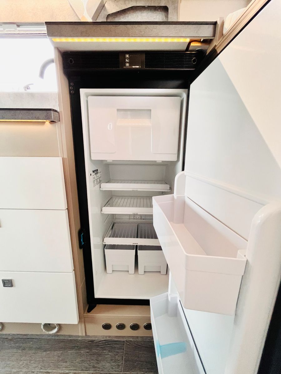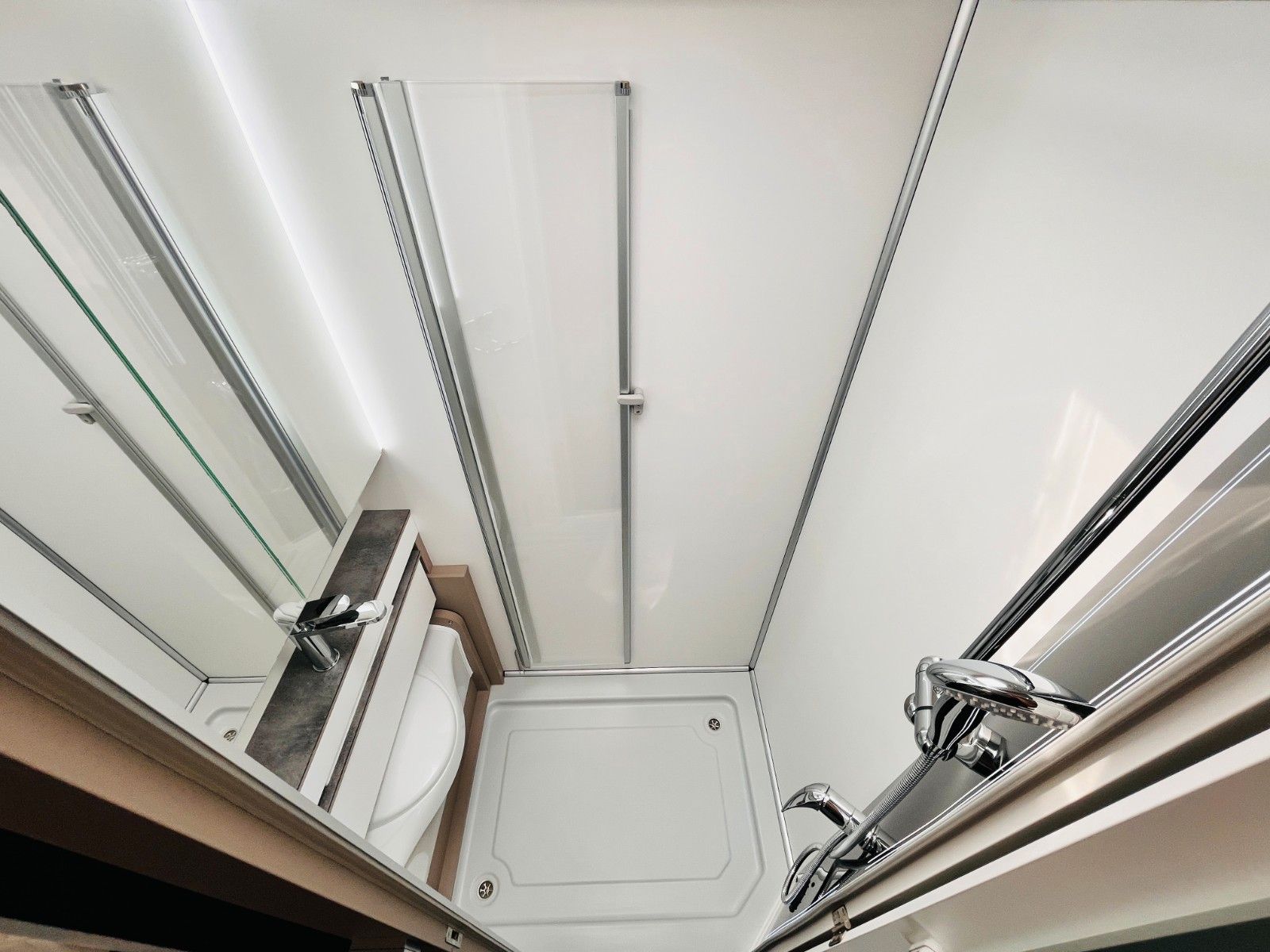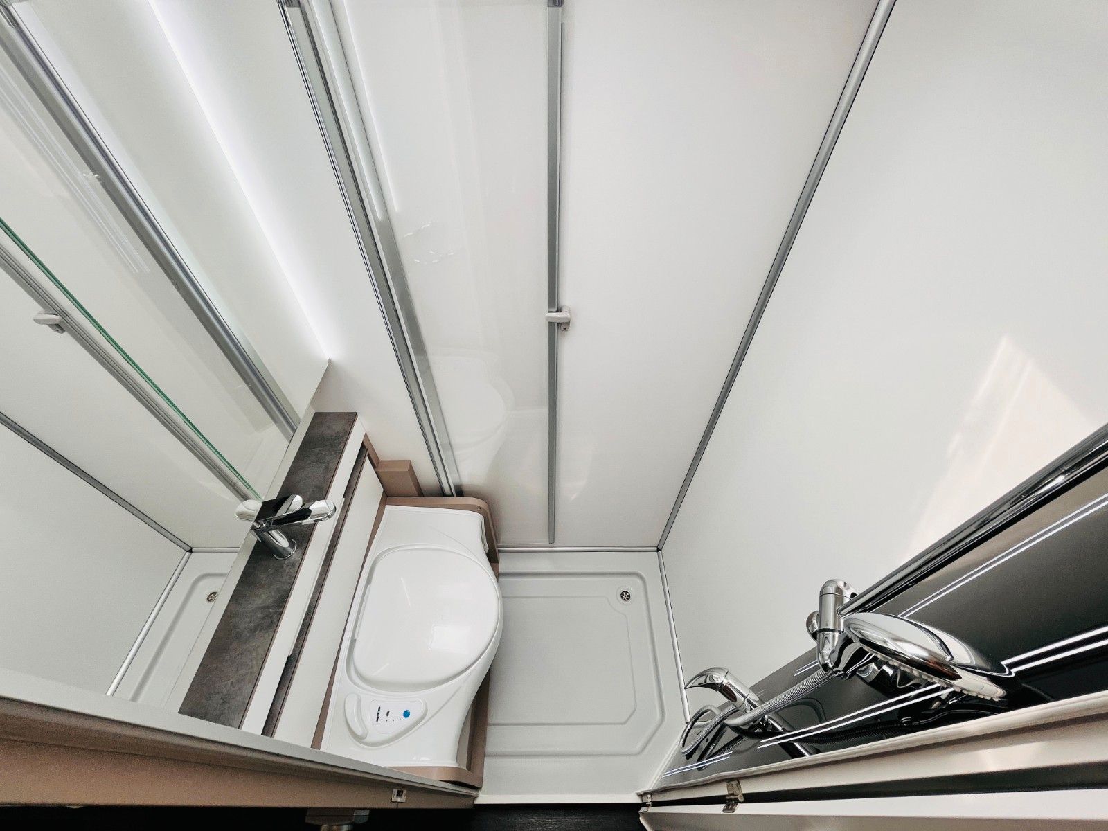 – Bad mit Waschbecken, Dusche und Thetford- Cassettentoilette