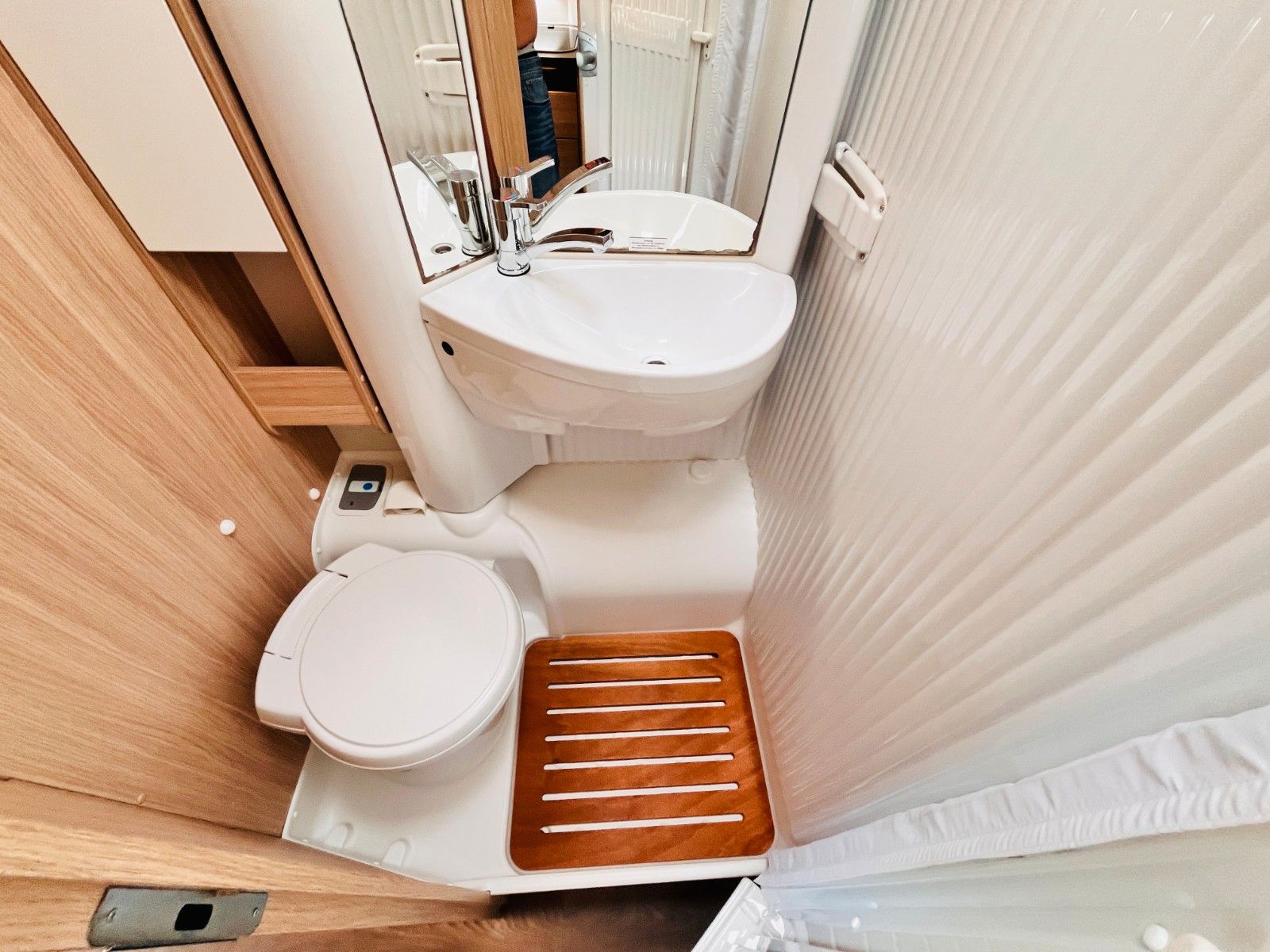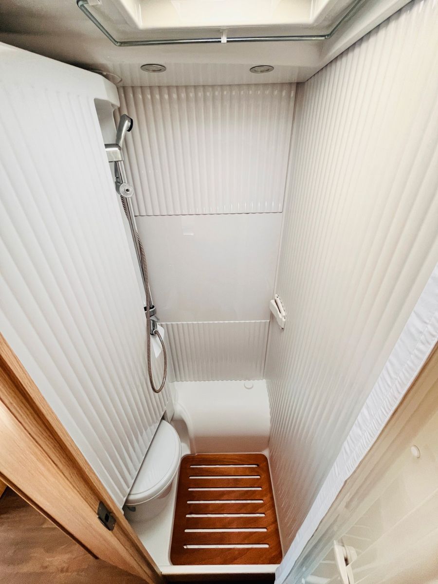 – Bad mit Dusche, Waschbecken und Thetford- Cassettentoilette
