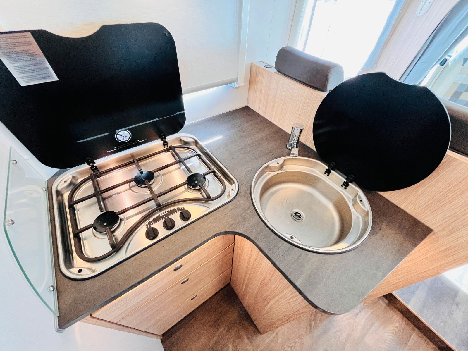 – Küchenblock mit Stauraum, Spüle und 3-Flammenkocher