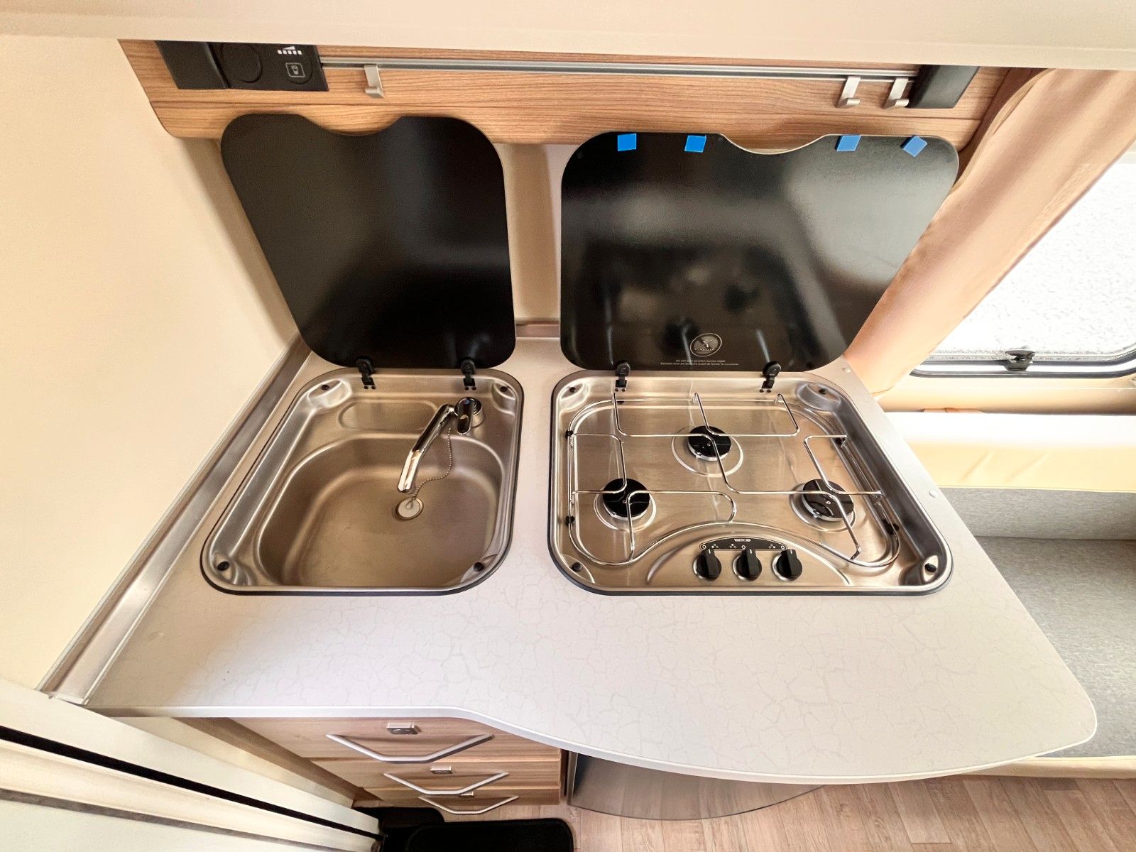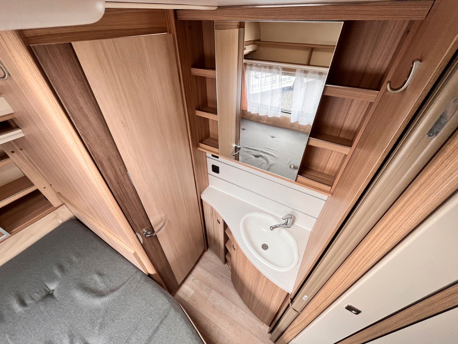 – Bad mit außenliegendem Waschbecken, Fenster und Thetford-Cassettentoilette