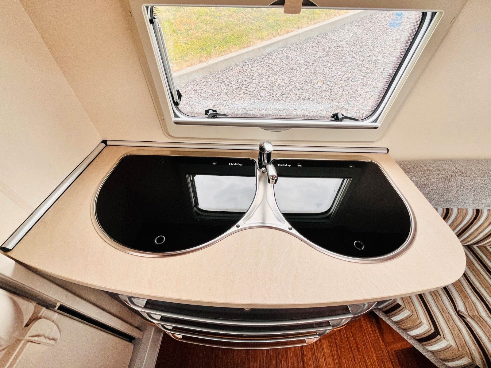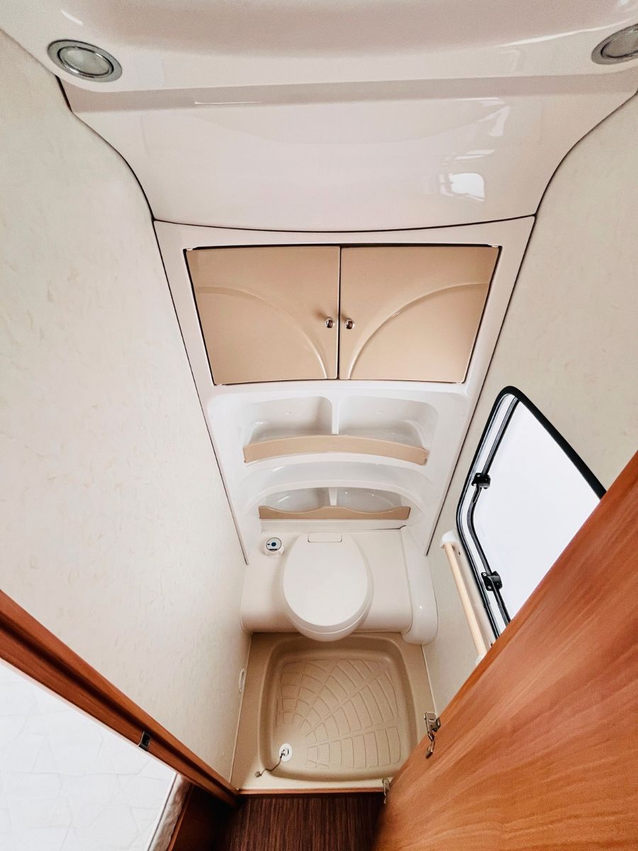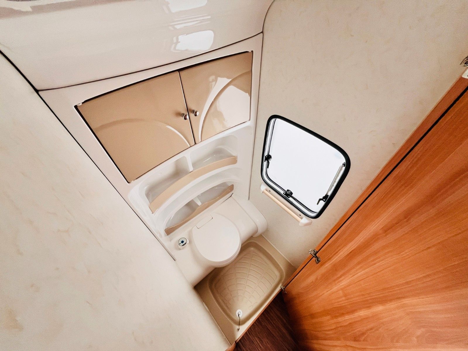 – Bad mit außenliegendem Waschbecken, Fenster und Thetford-Cassettentoilette