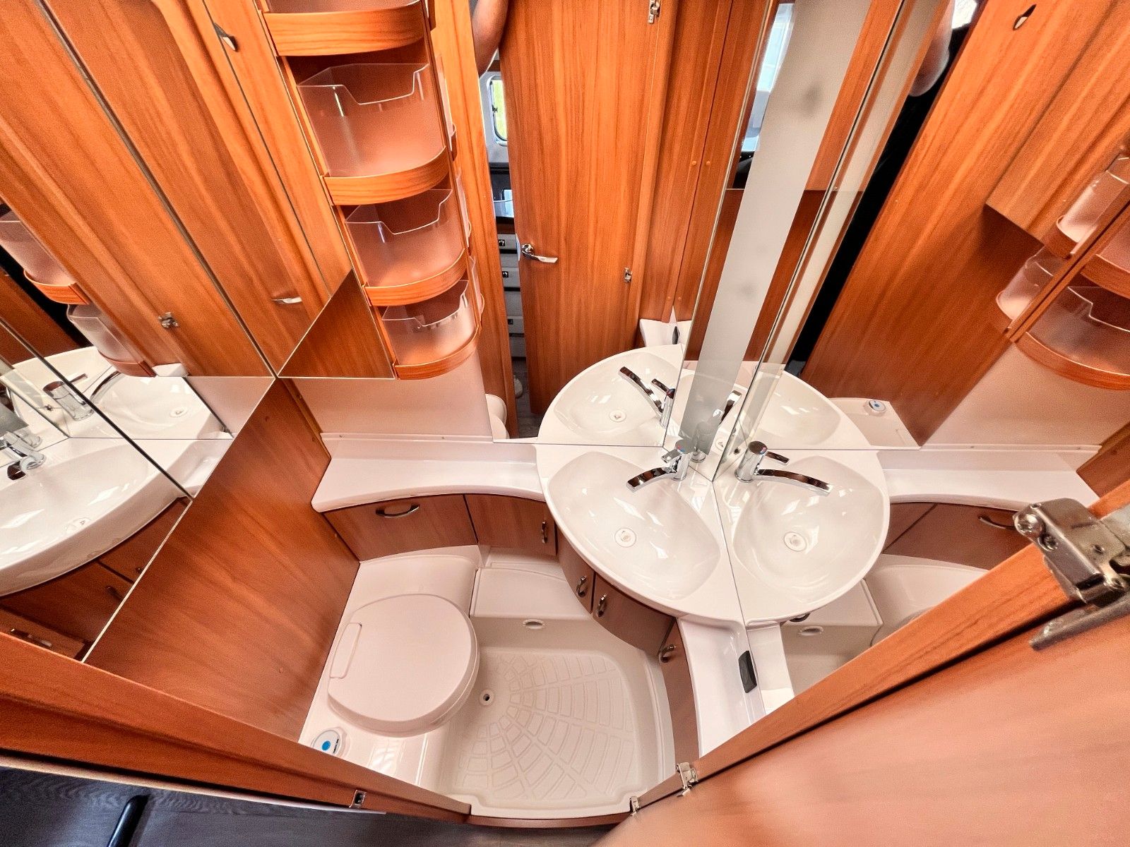 – Bad mit Waschbecken und Thetford-Cassettentoilette