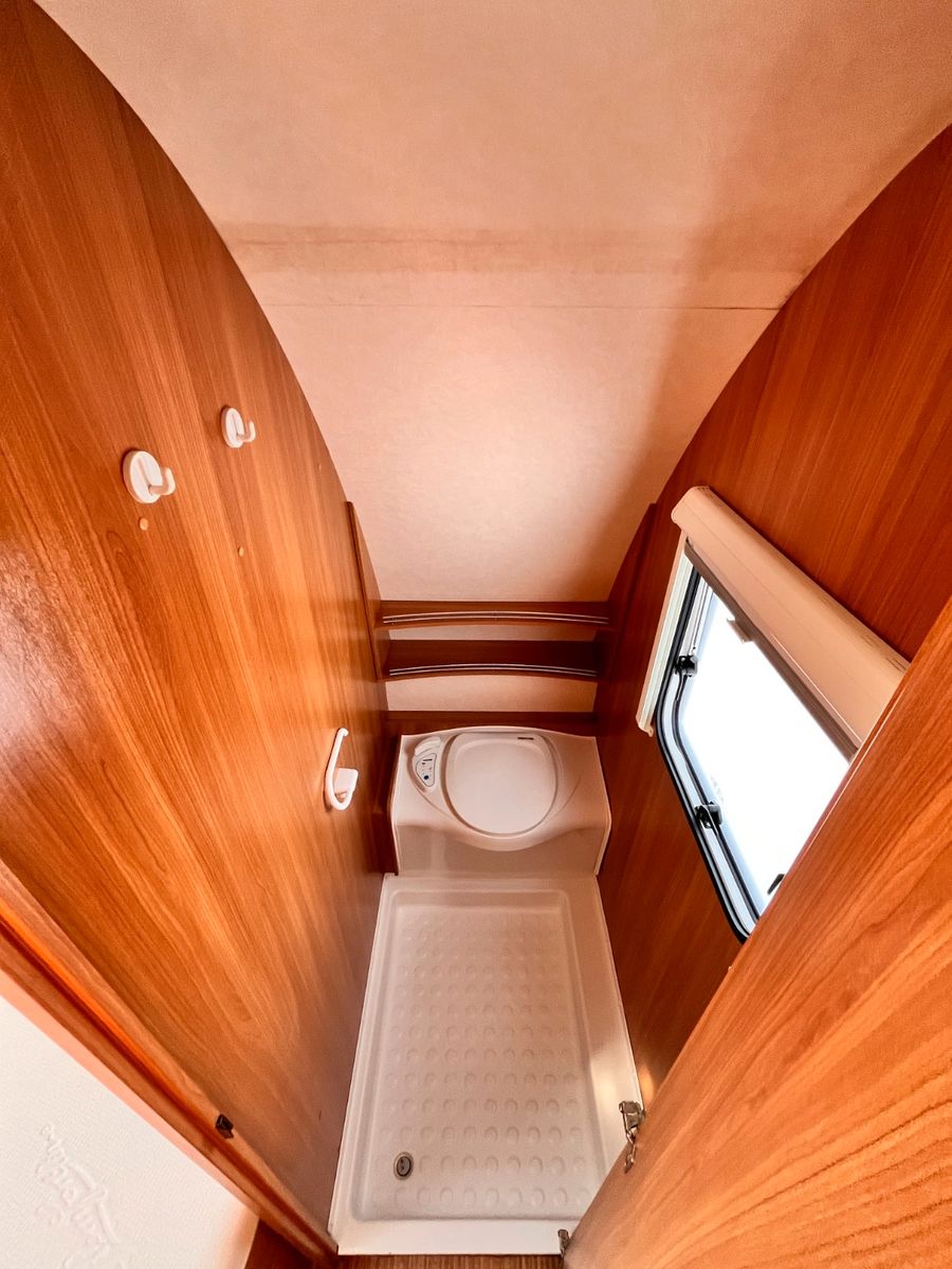 – Bad mit außenliegendem Waschbecken, Fenster und Thetford-Cassettentoilette